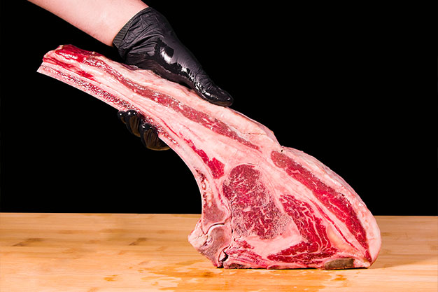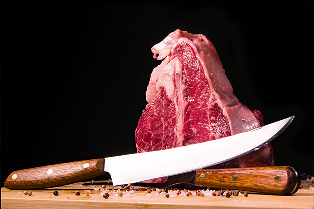 Un corte especial, donde resalta el hueso en forma de T. Por un lado solomillo y por el otro el entrecot de lomo.